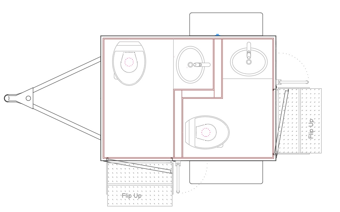 2 Station 7' Mini Restroom Trailer Enlarge View Floorplan View Floorplan 2 Station 7' Mini Restroom Trailer sku# 1214NB Compact Series Under 3500lbs Upgraded Built in cabinets A higher class trailer for backyard rentals or small upscale events. Request a Quote Share This Product Trailer Specifications Trailer Frame/Shell Optional Items Trailer Specifications Lowest floor height with large waste tanks Rooftop air-conditioners, 13,500 BTU, with 5600 BTU heat strips included Porcelain RV style water-saving toilets, one pint per standard flush Timed faucets Mirrors Linoleum floors, single piece in each room protects the trailer from water damage Powder coated toilet partitions Urinal privacy screens Standard Fiberglass wall panels, attractive and easy to clean LED Interior lighting, interior and exterior Tank level visual sight level indicator for waste tanks Trailer Frame/Shell Our high quality steel trailer frame and exterior walls are built to last White, Charcoal or Pewter aluminum exterior skin for a corrosive free look. Other exterior colors are available upon request (minimal charge applies) Thick aluminum skin (0.40) for increased durability. 7,000 lbs Independent Torsion Suspension axles and trailer rated radial tires help provide smoother, safer towing. E-Z Lube Hubs With steel wheels Modular-styled rims w/E-Coat prime and powder finish All-wheel brakes w/12 volt breakaway switch and battery D.O.T. premium LED superior trailer lights Warranty: 5 years on frame and axles, 1 year overall warranty, unless superseded by their manufacturers warranty. Optional Items Upgradable interiors Sound amplification system All necessary dispensers available, and baby changing stations. Skirts, for around base of trailer LED occupied lights Vacancy Deadbolts Extra heaters for climates of below freezing temperatures. Aluminum rims