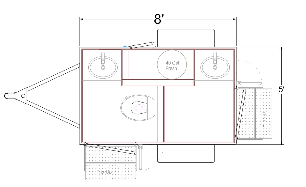Great for backyard rentals with more sustainability with an added fresh water tank.