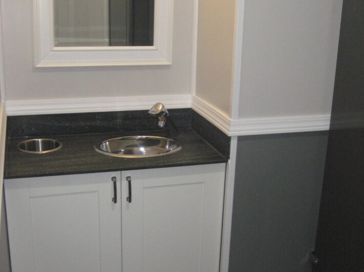 • Porcelain RV style water-saving toilets, one pint per standard flush