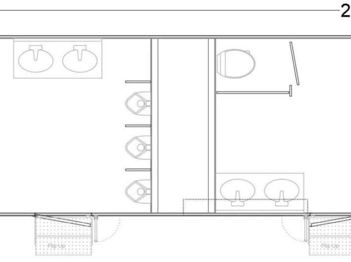 - Porcelain RV style water-saving toilets, one pint per standard flush